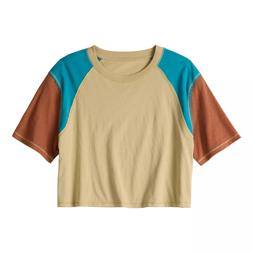 Casual classic. Inspire your wardrobe with this juniors’ raglan varsity tee from SO.
