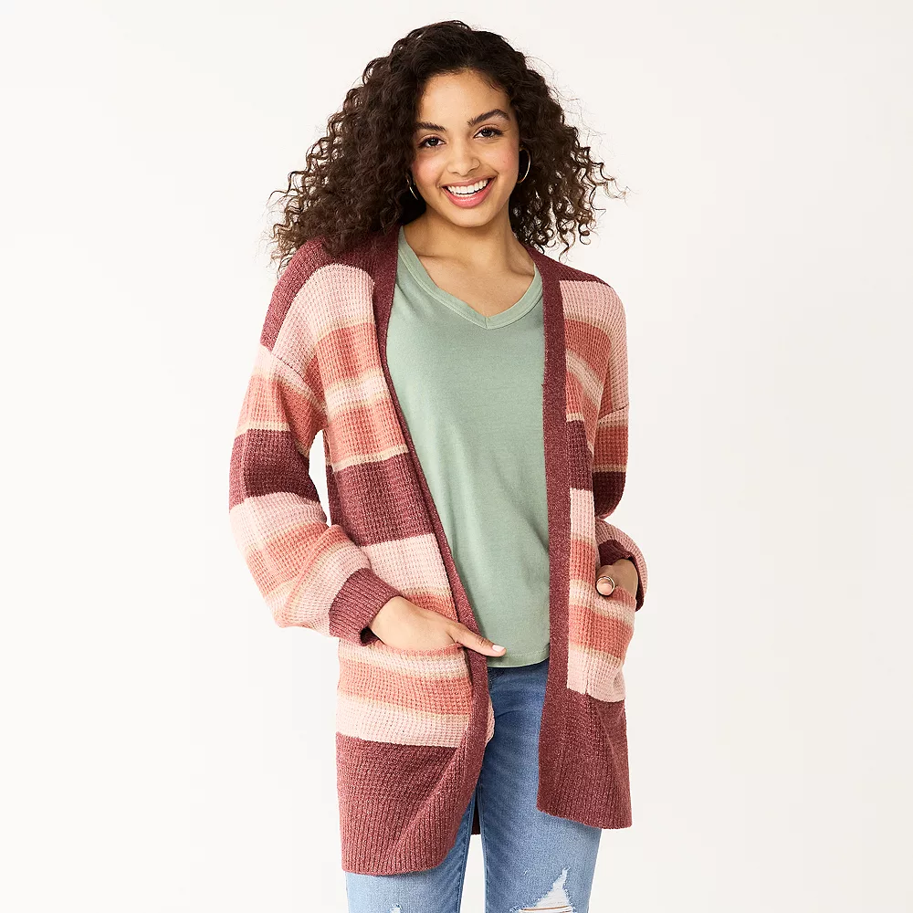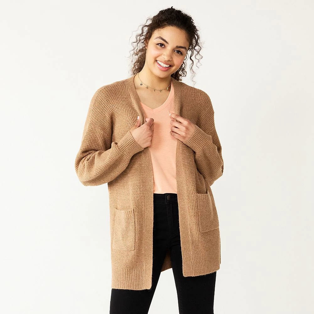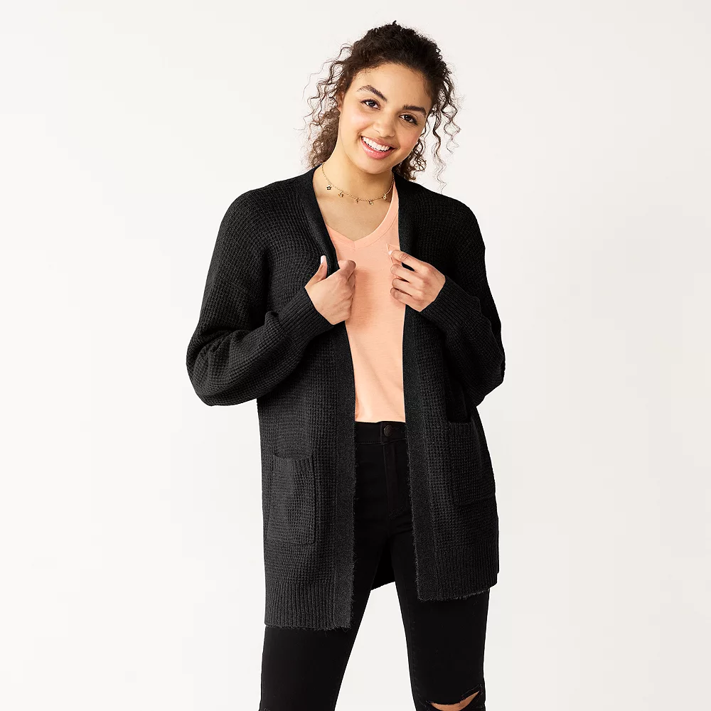 Level up your outfits with this juniors’ waffle cardigan by SO®.