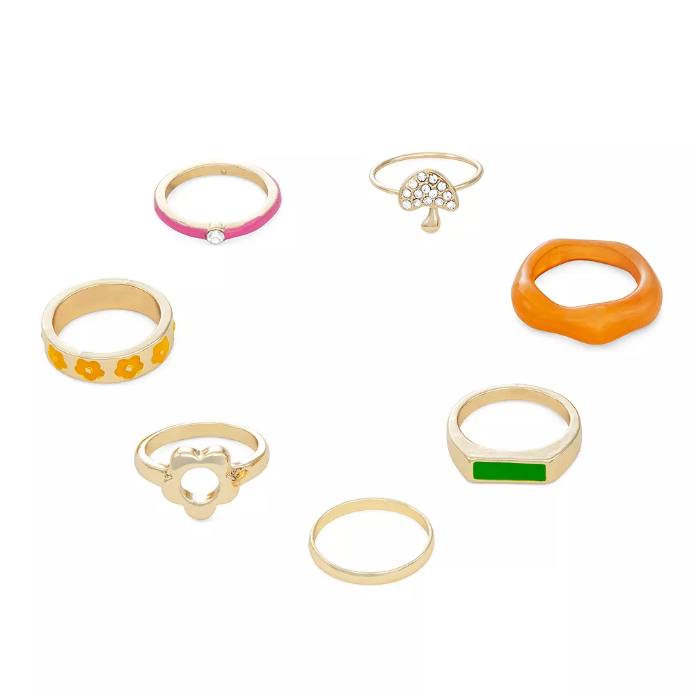This SO® Mixed Media 7 Pack Ring Set covers a fun accent for any occasion.